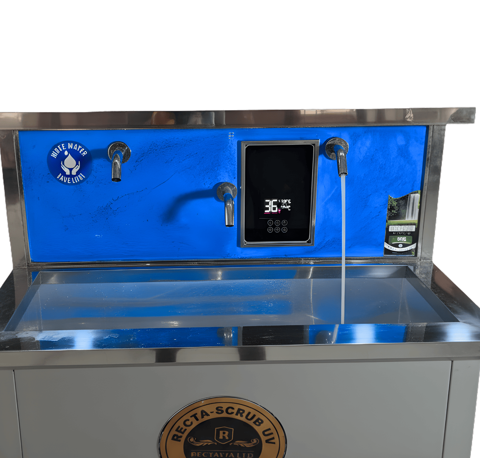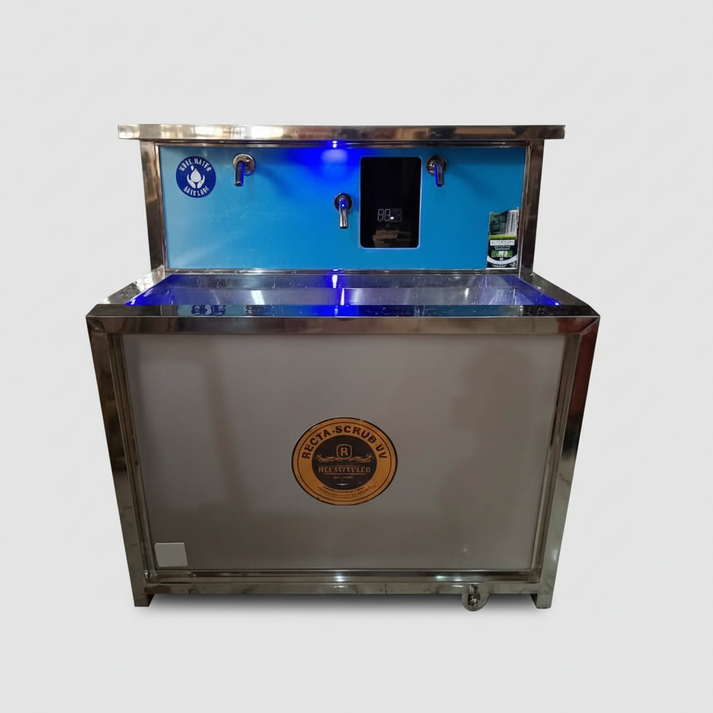 Equipped with UV lights designed to reduce microbial presence on the sink surface and surrounding areas, enhancing infection-control standards.