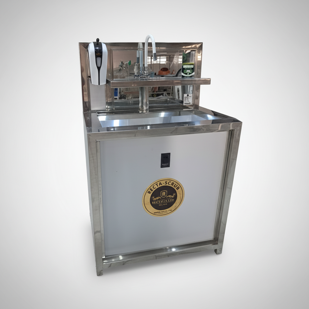 The Recta Single-Stationed Scrub Sink is a high-quality clinical sink designed for individual use in hospitals and surgical environments. Featuring infrared touchless water flow, hot and cold water supply, and a built-in soap dispenser, it ensures efficient, hygienic, and comfortable handwashing. Its medical-grade stainless steel construction and seamless design make it durable, easy to clean, and ideal for infection control.